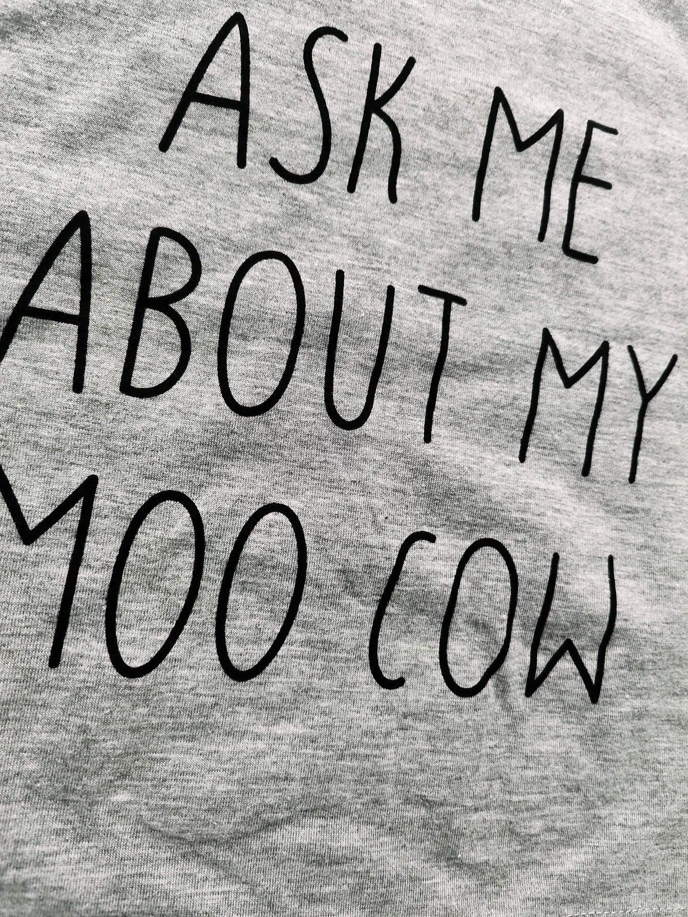 This funny ask me about my moo cow shirt is made of cotton, good quality and skin-friendly, a crew neck short sleeve top comfortable to wear.