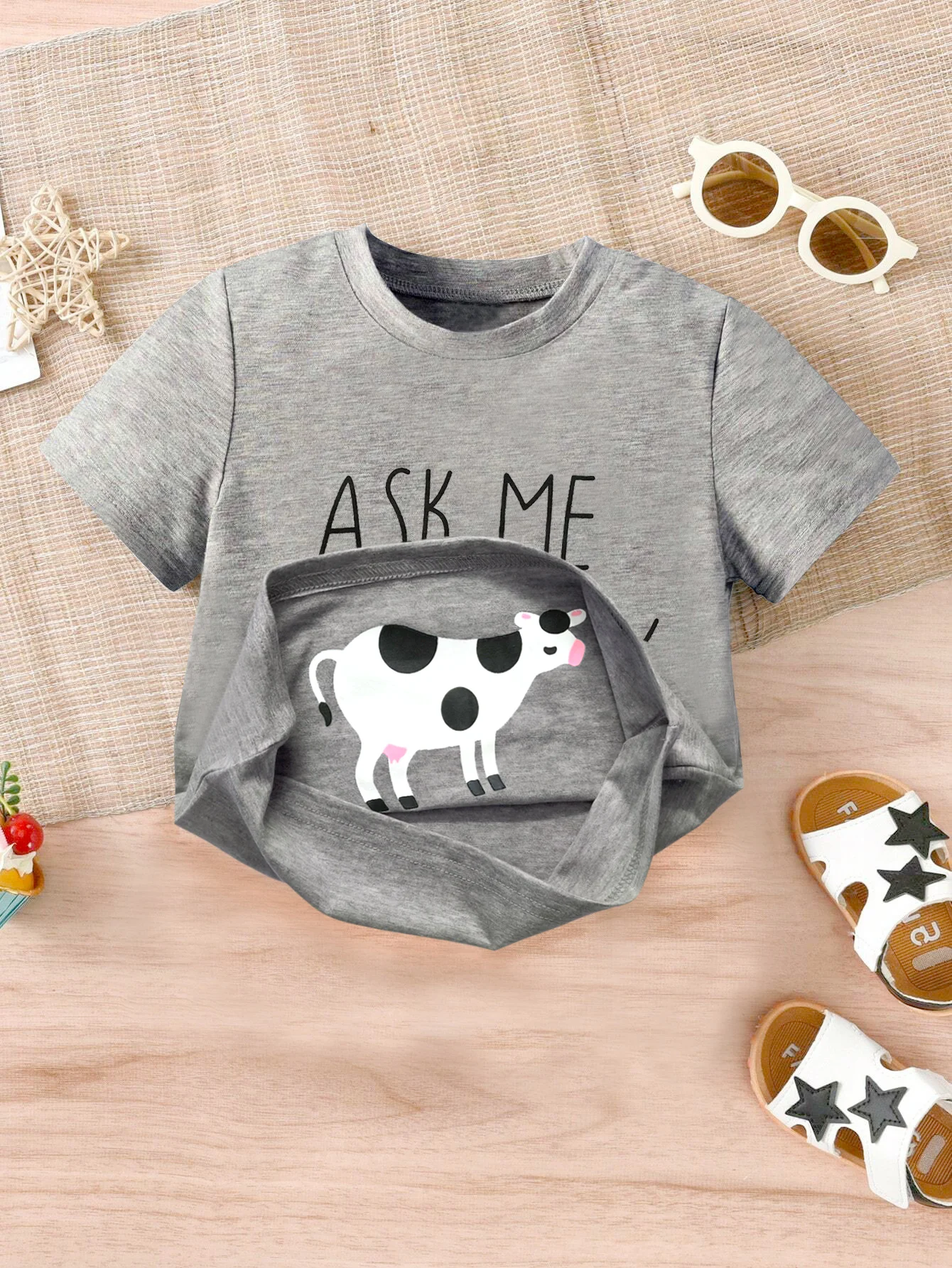 Baby short sleeve cow shirts for boys, it is stretchy material to lift the bottom of the shirt to show the Moo Cow. ask me about my moo cow shirt for toddlers Toddler funny shirts are perfectly fit for adorable little Cow-Loving, So Much Fun!